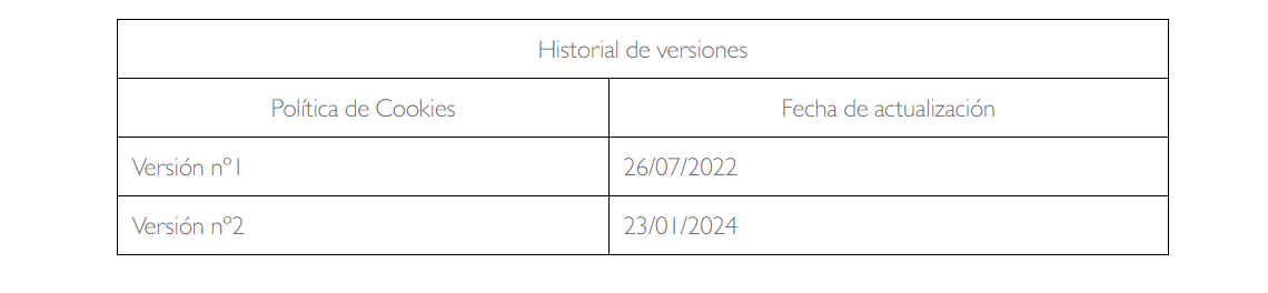 Te rogamos que compruebes de forma regular el contenido de la política de cookies, ya que es posible que por nuevas interpretaciones realizadas por el organismo regulador competente, jueces o tribunales, la misma pueda sufrir alguna modificación.